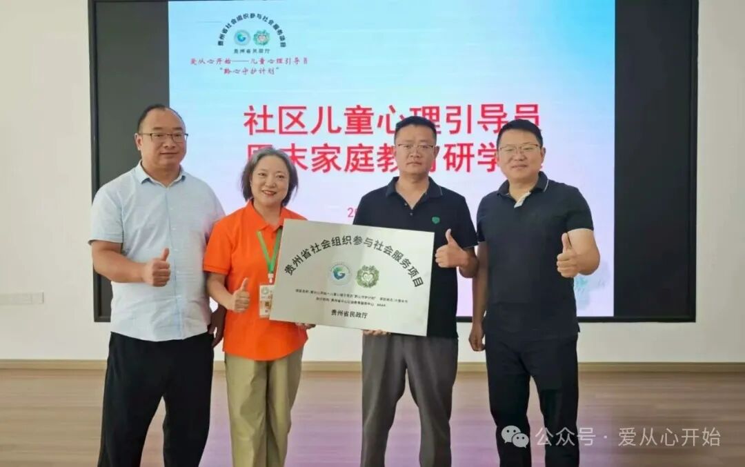 2025年8月24日,由贵州省民政厅指导,六盘水市民政局、市委社工部、市教育局、市卫健局、市妇联、共青团六盘水市委等多部门共同支持的“贵州省社会组织参与社会服务项目——六盘水市‘爱从心开始’社区儿童心理引导员‘黔心守护计划’”,在钟山区荷城街道钢城花园社区正式揭牌落地。当天,为期两天一夜的“社区儿童心理引导员培训暨周末家庭教育研学课堂”也圆满收官。